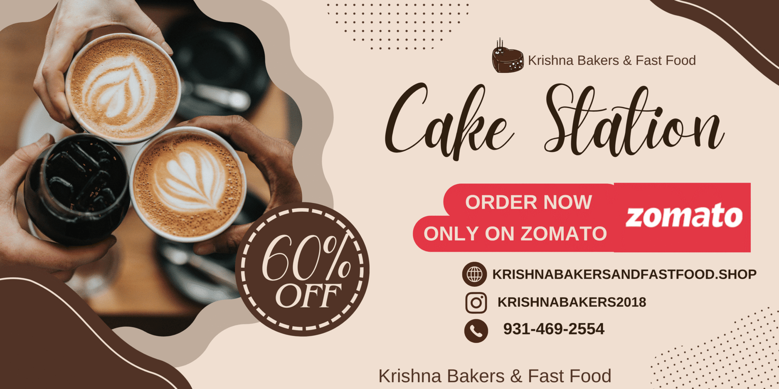 Choose Krishna Bakers & Fast Food for fresh cakes, quick Zomato delivery, and easy cake pre-orders made just the way you like. 😊